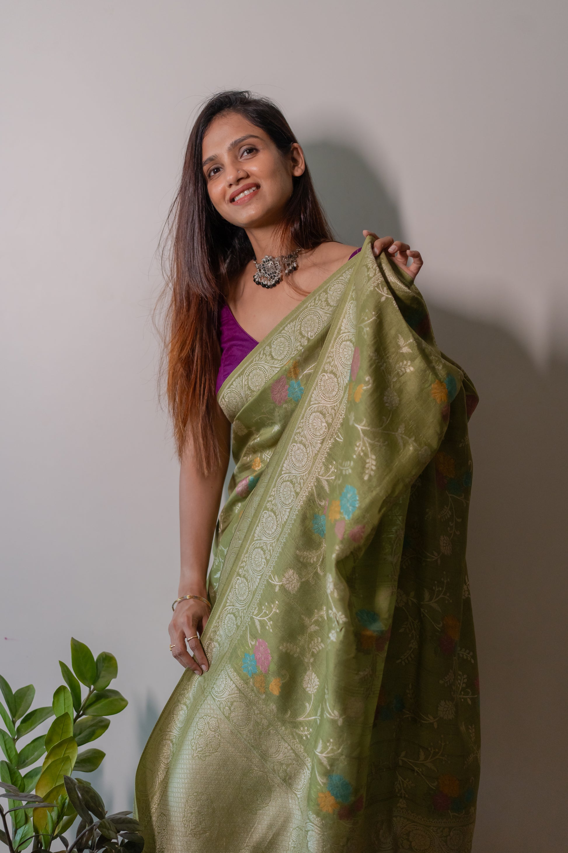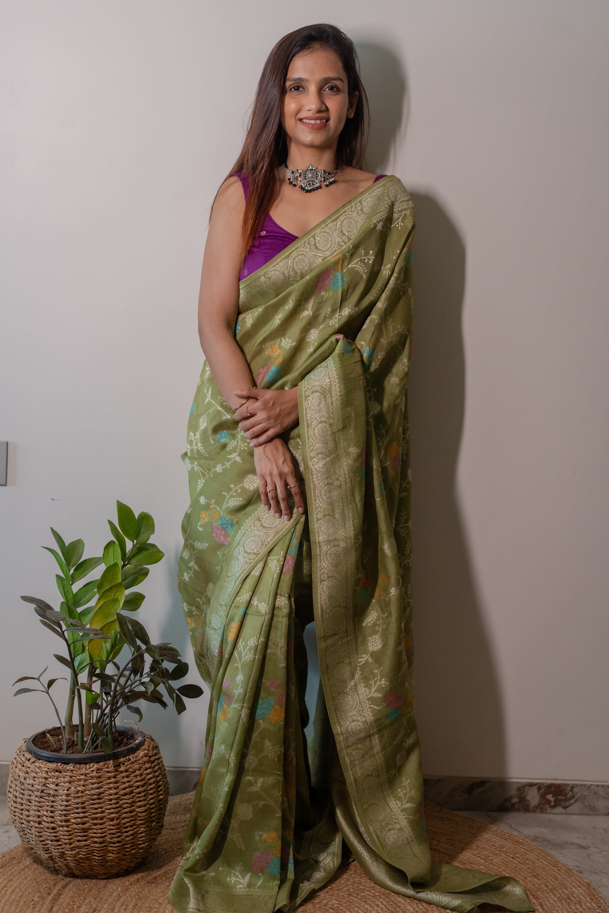 Tussar Georgette with Jaal work